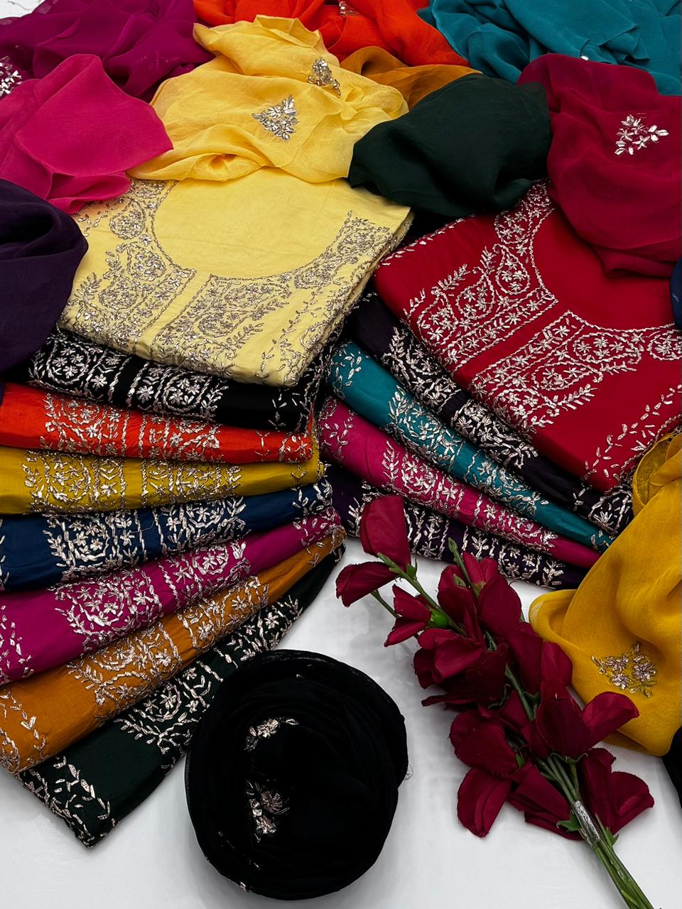 Chiffon Shadow Chikenkari with Mirror Work 2 Pc suit