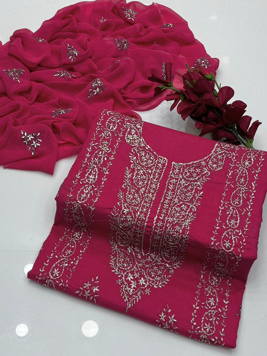 Handmade Chatta Mukaish Work 2 PC Soft Crinkle Chiffon Suit Unstitched