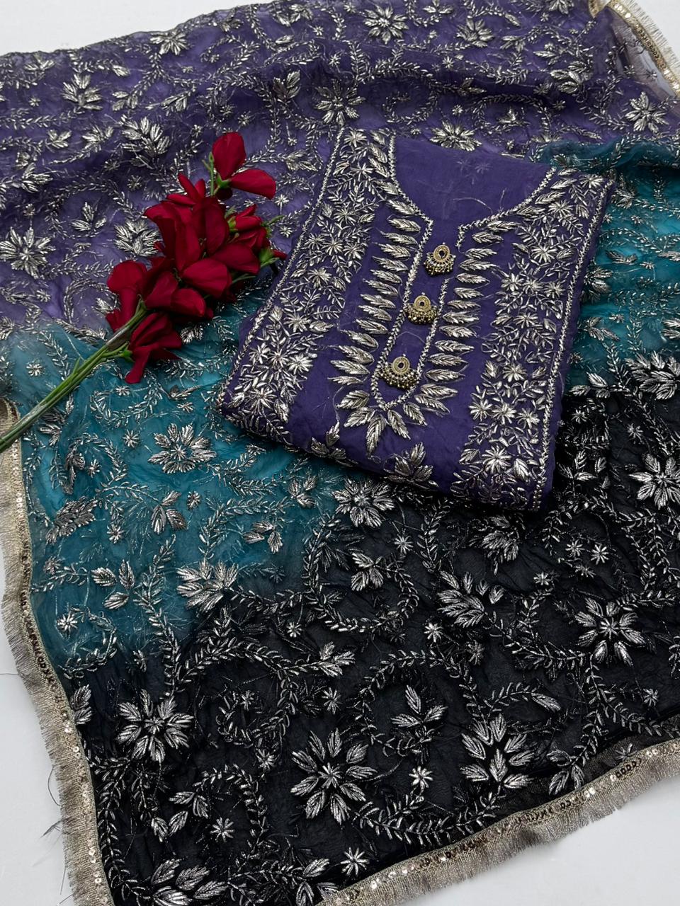 Pure Organza Gotta Work with Three Shaded Dupatt 2 Pc Suit