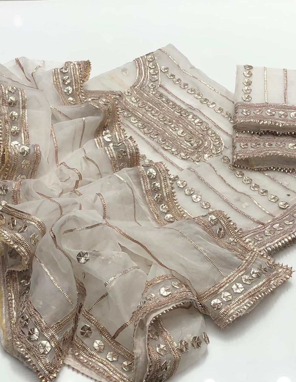 Pure Organza Handmade LCD Gota Kinari Heavy Work 2 PC Unstitched