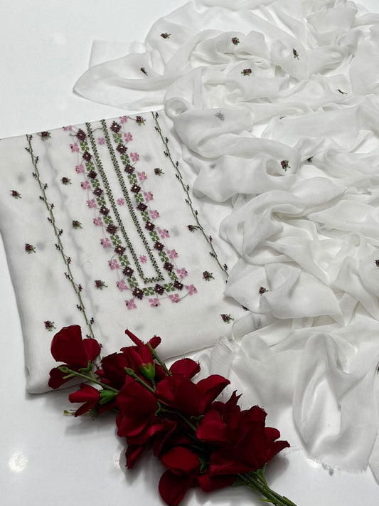 Bamber Chiffon Handmade Cross Stitch Work Neck Line Style 2 PC Unstiched